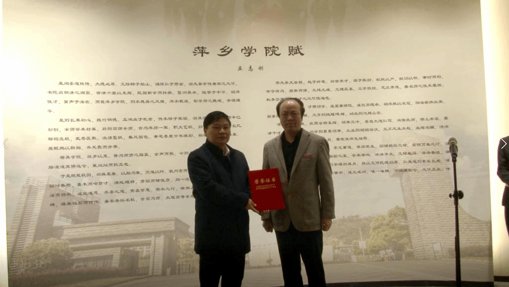 仪式上,校党委书记陈金印为《beat365正版唯一官网赋》作者巫志刚颁发荣誉证书。