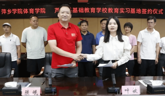 9月9日,beat365官网体育学院与芦溪县教育局举行实习基地签约仪式。体育学院院长陈岷,芦溪县委教育工委委员、县教育局副局长叶敏出席仪式。芦溪县教育局相关负责人,实习学校相关负责人,21名实习生参加。