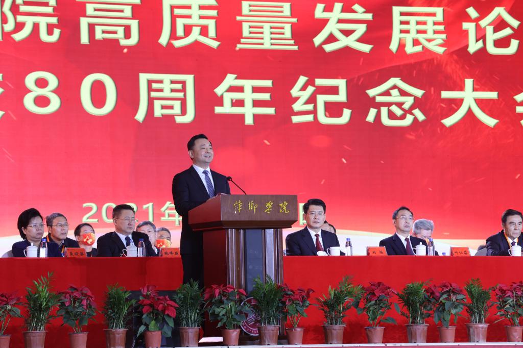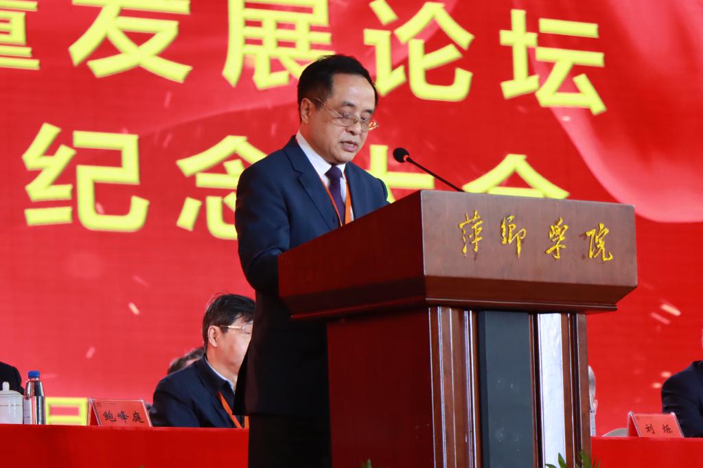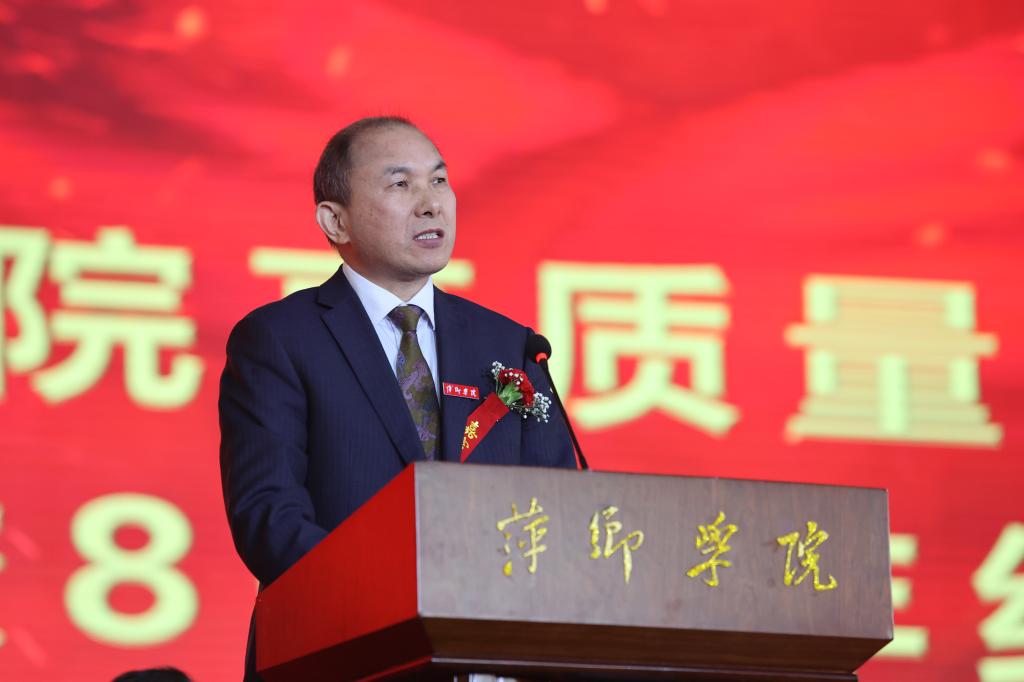 陈金印在主持时指出,80年来学校在波澜壮阔的伟大爱国斗争中接受洗礼锤炼,在共和国的旗帜下成长,在改革开放的伟大实践中发展壮大。今天的大会,既是对学校办学历史的真情追忆,也是对伟大时代的深情礼赞;既是学校扎根红色沃土、传承红色基因办学成果的展示,也是beat365正版唯一官网勇立潮头、乘风破浪,改革再出发的冲锋号。学校一直以来坚持地方性、应用型办学定位,在萍乡市委、市政府的领导、关怀、支持下,坚持立足萍乡,服务地方,与萍乡经济社会发展同向同行、同频共振。