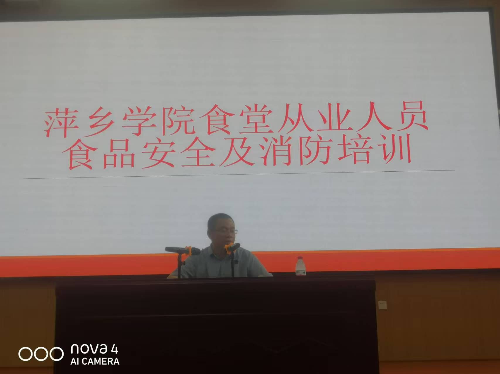 8月30号下午,beat365官网在跬步楼1115会议室召开食堂从业人员餐饮食品安全及消防知识培训会。会议邀请了安源区市场监督管理局东大分局副局长洪卫忠现场授课。学校全体食堂餐饮工作人员参加培训会。会议由后勤管理处副处长李小强主持。