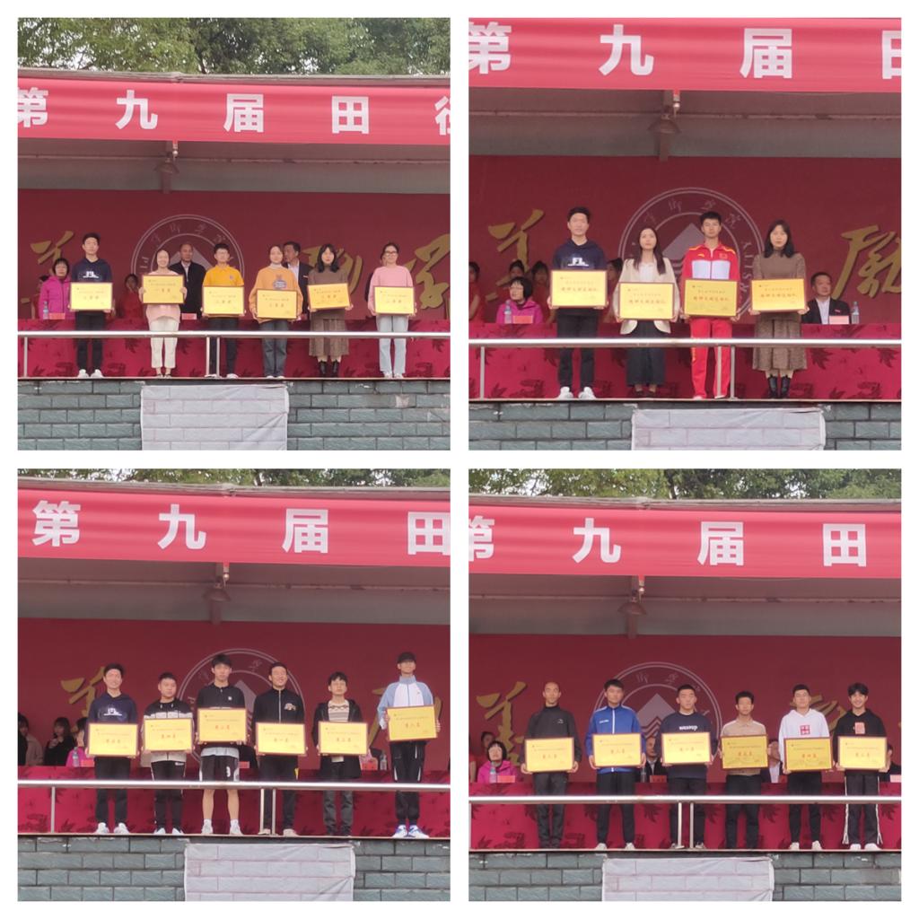 闭幕式上,裁判长杨细文宣布了本届田径运动会的比赛成绩;学工处处长肖国正宣布了精神文明代表团、精神文明运动员、精神文明裁判员获奖名单;校领导为获奖代表颁奖。