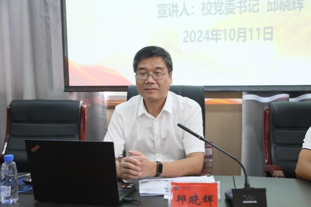 10月11日,校党委书记邱晓辉深入材料与化学工程学院宣讲党的二十届三中全会和全国教育大会精神,深入阐述解读全会和教育大会精神及工作安排。宣讲会由材料与化学工程学院党委书记陈林主持。学院师生党员参加宣讲会。