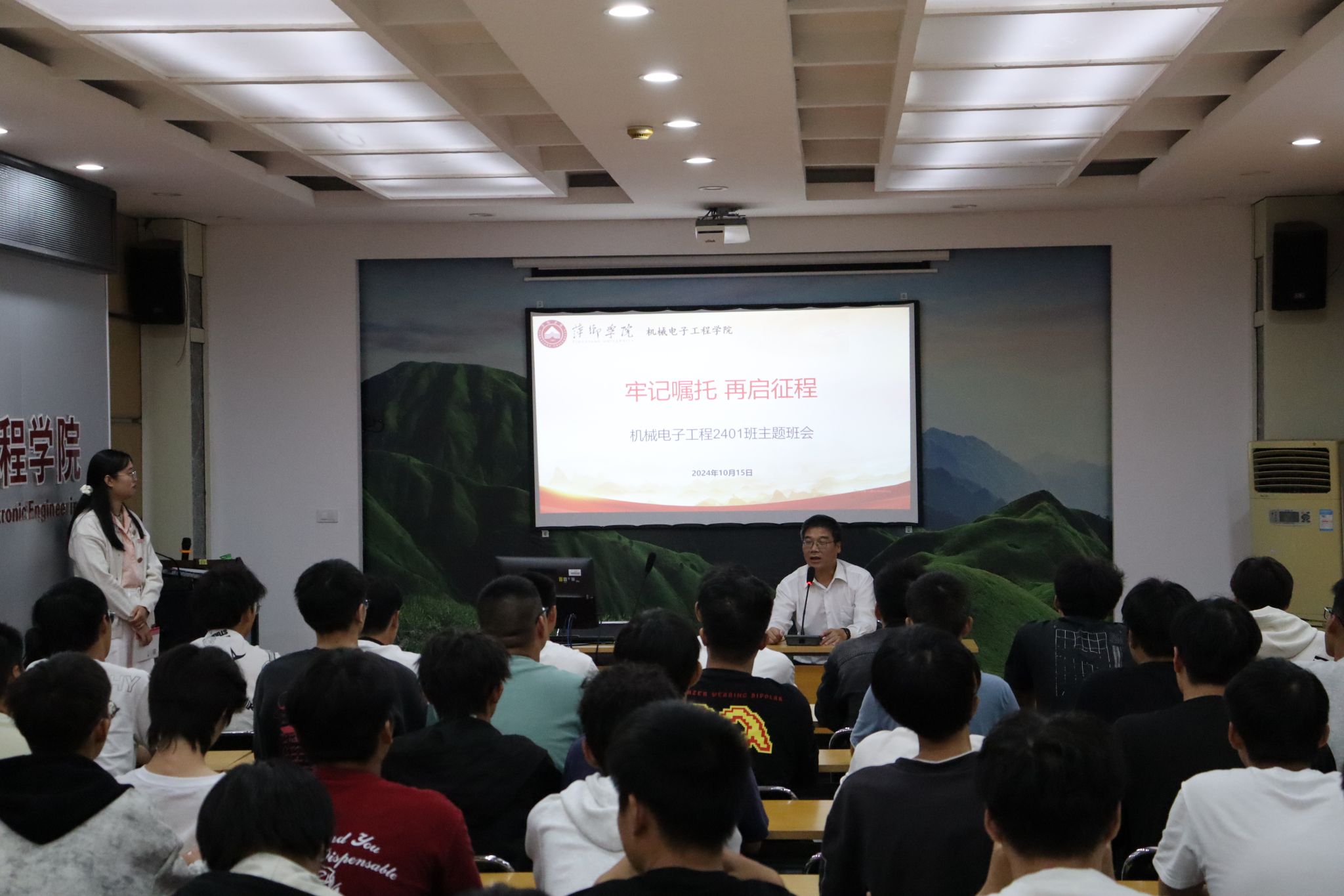 座谈会后,邱晓辉还前往鼎新楼2200会议室参与了一场机械电子工程学院24级电子工程1班的主题班会。邱晓辉勉励同学们,要树立远大目标,练就过硬本领,与时代同向、与祖国同行。