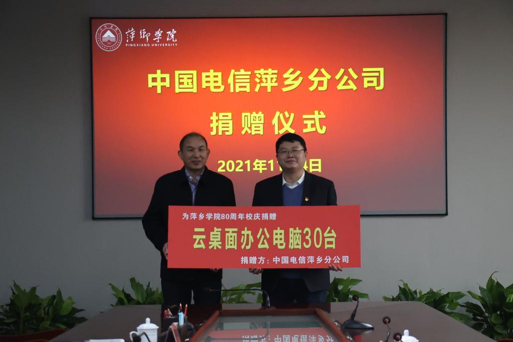 据悉,中国电信萍乡分公司此次为学校捐赠云桌面办公电脑30台,价值15万元。