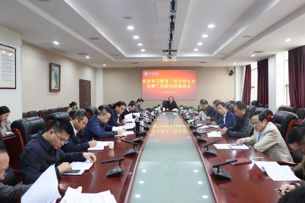 校党委书记陈金印作了讲话。他指出,“我为师生办实事”是党史学习教育活动的重要组成部分,是党史学习教育活动的最终落脚点,是当前和今后的工作重点也是工作目的。他强调,全校上下要提高政治站位,高度重视“我为师生办实事”实践活动,将“我为师生办实事”实践活动作为重要工作来落实;要进一步完善任务清单,认真梳理已办理的实事项目,善于总结发现问题,积极配合相关部门,认真完善任务清单;要进一步压实“我为师生办实事”的责任,确保将“我为师生办实事”实践活动落到实处,真正达到为师生解决“急、难、愁、盼”问题的目的;要加大宣传“我为师生办实事”实践活动的力度,让师生评阅实践活动成果,给师生提交一份满意的答卷。