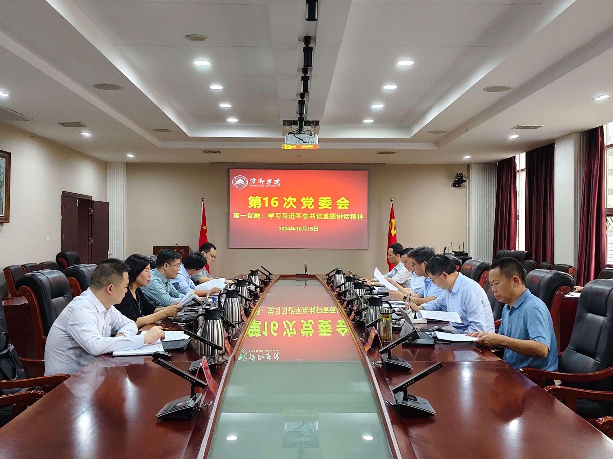 10月18日,校党委在至善楼第一会议室召开党委会“第一议题”学习会,集体深入学习习近平总书记给中国传媒大学全体师生的回信;习近平总书记主持中共中央政治局会议 分析研究当前经济形势和经济工作;习近平总书记在全国民族团结进步表彰大会上发表重要讲话;习近平总书记给中国一重产业工人代表的回信;习近平总书记向国家勋章和国家荣誉称号获得者颁授勋章奖章并发表重要讲话;《求是》杂志发表习近平总书记重要文章《大力弘扬伟大爱国主义精神,把强国建设、民族复兴伟业不断推向前进》;习近平总书记在庆祝中华人民共和国成立75周年招待会上发表重要讲话;习近平总书记致中国红十字会第十二次全国会员代表大会的信;习近平总书记给“银龄行动”老年志愿者代表的回信;习近平主席会见出席中国国际友好大会暨中国人民对外友好协会成立70周年纪念活动外方嘉宾;在习近平总书记考察江西一周年之际,省委常委会召开(扩大)会议;萍纪通〔2024〕12 号市纪委关于6起安全生产领域不正之风和腐败典型问题的通报等。