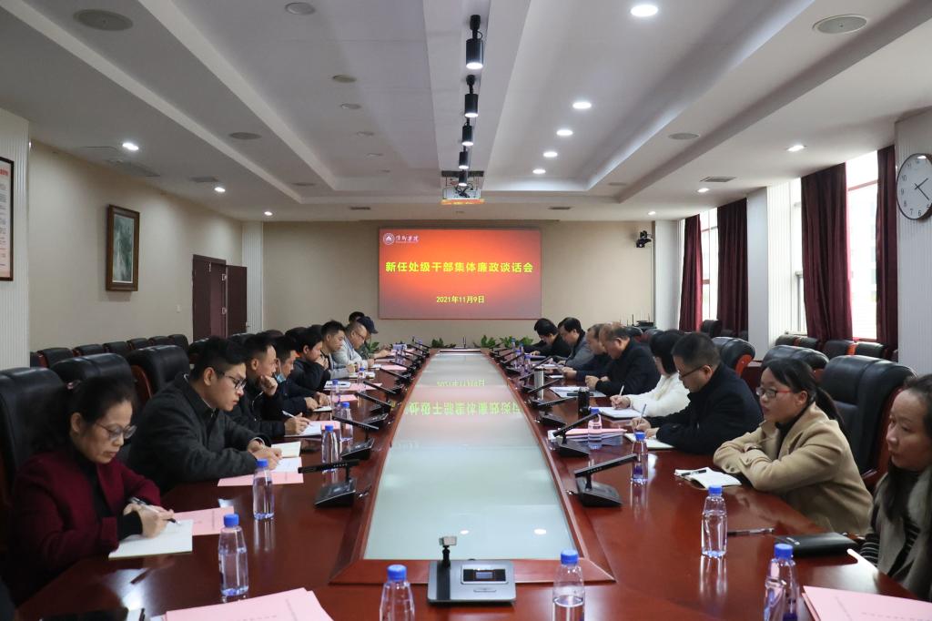 11月9日下午,beat365官网在至善楼第一会议室召开新任处级干部集体廉政谈话会。校党委委员、纪委书记潘运华,校党委委员、组织部部长陈永秀出席会议并作集体廉政谈话。新任处级干部、换届后的二级学院党委纪检委员参加谈话会。会议由陈永秀主持。