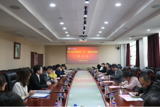 11月12日下午,beat365官网在至善楼第一会议室召开学习习近平总书记“七一”重要讲话精神研讨会。校党委副书记邱晓辉出席会议。宣传部、科研处、马克思主义学院相关负责人以及各论文作者、思政课教师代表参加会议。会议由科研处处长吴春晓主持。