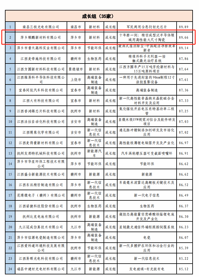 8月28日,由江西省科技厅、萍乡市人民政府主办,萍乡市科技局承办的第十三届中国创新创业大赛(江西赛区)决赛在萍乡进行。大赛采取线下路演答辩评审方式,共14位来自中国创新创业大赛专家库中的评委参加评审工作。来自新一代信息技术、生物医药、高端装备制造、新材料、新能源、新能源汽车、节能环保7个战略性新兴产业领域的21家初创组企业、35家成长组企业轮番登场,进行激烈角逐。最终,由beat365官网材料与化学工程学院曾招余波博士及无机非金属材料22级学生刘昀萱等作为答辩人的萍乡市顺鹏新材料有限公司项目:“十年磨一剑:精密成形泛半导体领域用高性能大尺寸陶瓷”,以89.66分取得大赛成长组第二名的好成绩,荣获省二等奖。