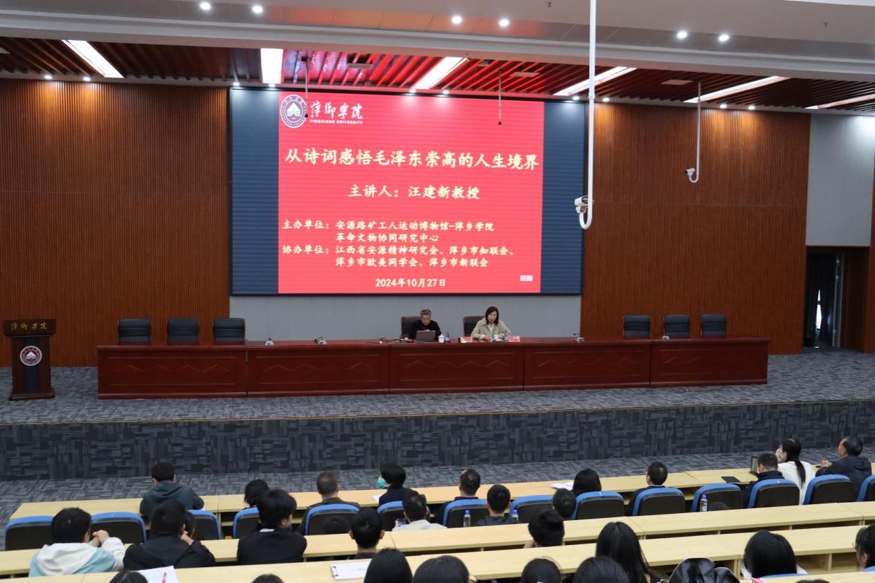 2024年10月27日上午天泉楼三楼学术报告厅,井冈山干部学院汪建新教授应邀来校作题为《从诗词感悟毛泽东崇高的人生境界》的讲座,beat365正版唯一官网师生300余人聆听了讲座,讲座由统战部部长贺晓梅教授主持。