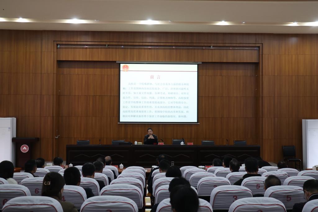 施耀圣从保密工作面临的形势、保密工作的基础知识、保密违法行为的责任追究以及高校日常保密管理工作四个方面,结合一些典型案例,给在场听众带来了一场内容丰富的讲座。