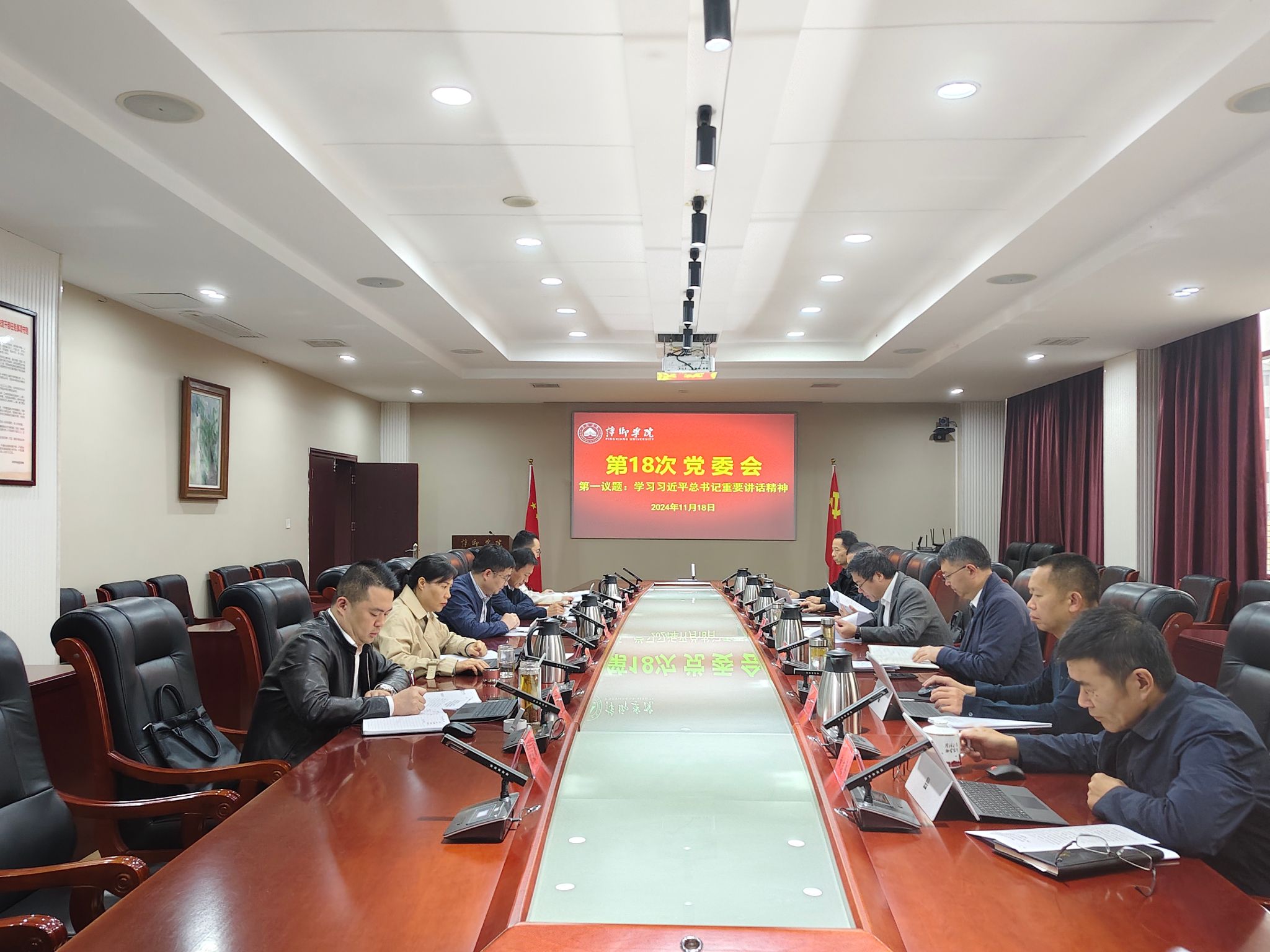 11月18日,校党委在第一会议室召开“第一议题”学习会,集体深入学习习近平总书记在省部级主要领导干部学习贯彻党的二十届三中全会精神专题研讨班开班式上发表重要讲话;《求是》杂志发表习近平总书记重要文章《促进高质量充分就业》;习近平总书记给上海市杨浦区“老杨树宣讲汇”全体同志回信;习近平总书记在视察空降兵军时发表重要讲话;习近平总书记对社会工作作出重要指示;习近平总书记在湖北考察时发表重要讲话;习近平主席向首届世界古典学大会致贺信;习近平主席向美国当选总统特朗普致贺电;习近平主席同意大利总统马塔雷拉会见出席中意文化合作机制大会和中意大学校长对话会代表;习近平主席复信巴西友好人士;习近平主席向“全球南方”媒体智库高端论坛致贺信;习近平总书记致信祝贺中山大学建校100周年;习近平总书记对广东珠海市驾车冲撞行人案件作出重要指示;习近平主席在秘鲁媒体发表署名文章等内容。学习会由校党委书记邱晓辉主持。