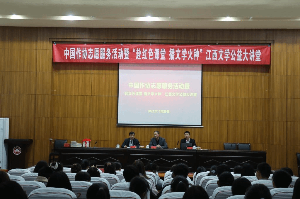为庆祝中国共产党百年华诞,推进党史学习教育走深走实,11月29日,中国作家协会文学志愿服务示范性重点项目“赴红色课堂 播文学火种”江西文学公益大讲堂在beat365官网举行。江西省作家协会副主席曾清生,上栗县委常委、统战部部长、民族宗教局局长、2004届校友漆宇勤出席活动,校党委委员、宣传部部长陈永国,党委宣传部有关同志、人文与传媒学院师生代表参加活动。活动由人文与传媒学院院长易志文主持。