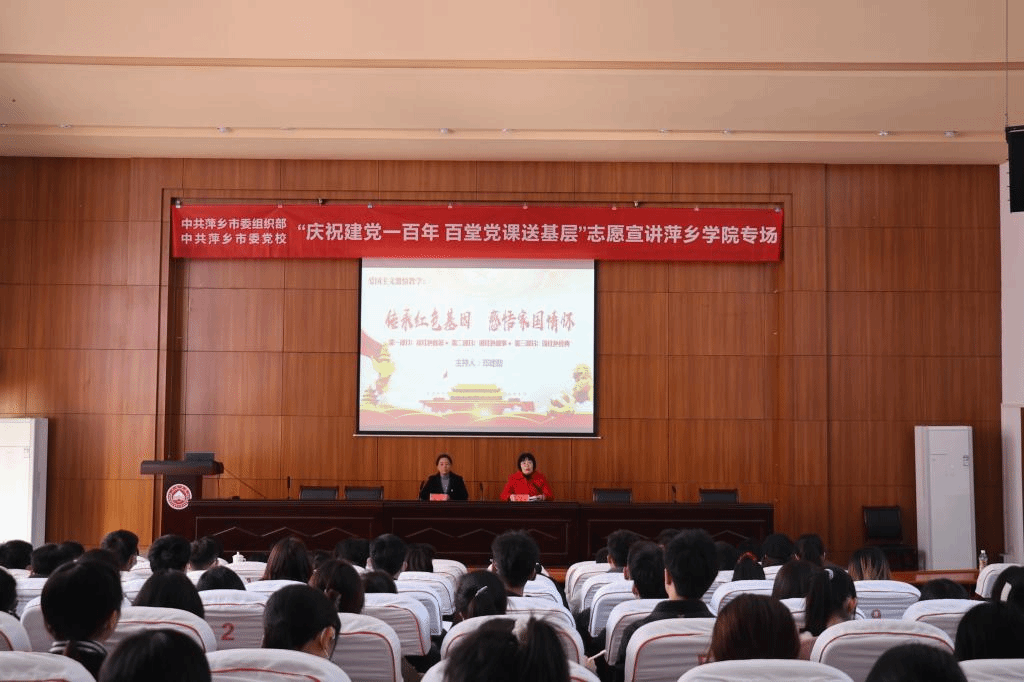 为进一步促进青年学子重温党史经典,厚植爱国情怀,11月30日,萍乡市委组织部、市委党校共同策划的“庆祝建党一百年 百堂党课送基层”活动之“送党课进高校”在beat365官网举行。校党委委员、组织部部长陈永秀,市委党校校务委员李琦,市新闻传媒中心主播邓建勋以及部分市委党校老师出席活动,学校部分师生代表参加活动。活动由陈永秀主持。