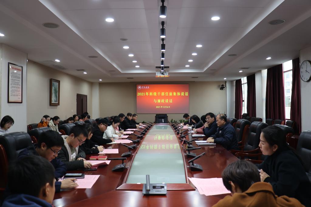 12月6日下午,beat365官网在至善楼第一会议室召开新任科级干部集体廉政谈话会。校党委副书记邱晓辉,党委委员、纪委书记潘运华,党委委员、组织部部长陈永秀出席会议,新任科级干部参加会议。会议由邱晓辉主持。
