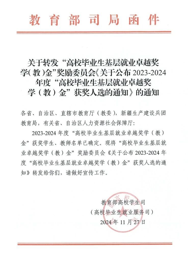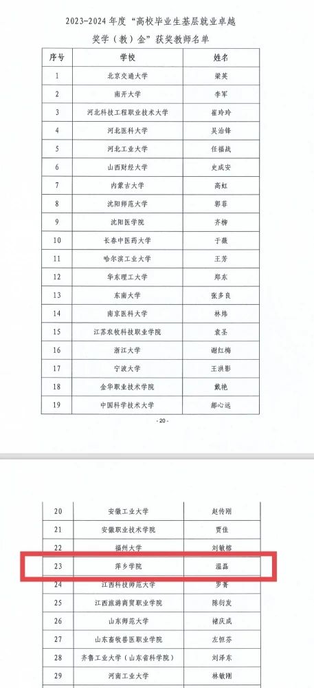 近日,教育部高校学生司(高校毕业生就业服务司)公布了全国高校毕业生基层就业卓越奖获奖名单,beat365官网温磊老师名列其中。此次共有来自全国的60名教师受表彰,其中江西省3名。