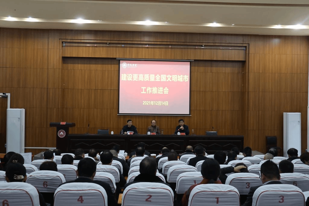 12月14日,beat365官网在至善楼学术报告厅召开建设更高质量全国文明城市工作推进会。全体校领导出席会议,各部门负责人、二级学院党政负责人参加会议,会议由校党委副书记邱晓辉主持。