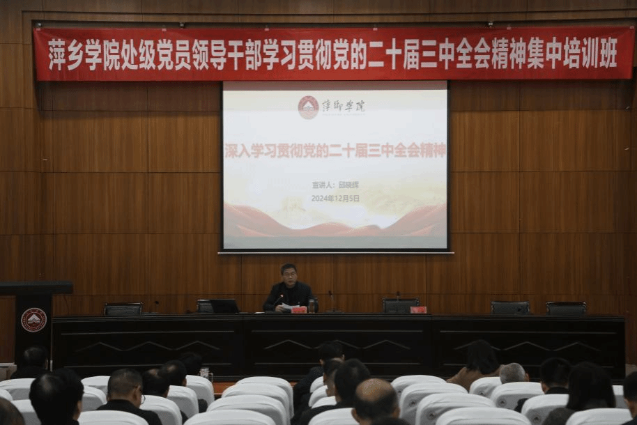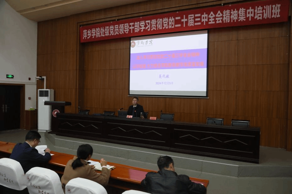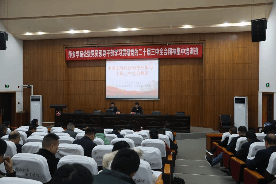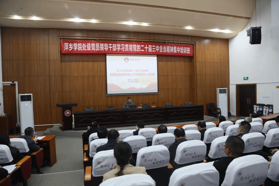 本次培训紧扣学习贯彻党的二十届三中全会精神,校党委书记邱晓辉为全体学员作了《深入学习贯彻党的二十届三中全会精神 奋力开创进一步推进学校全面深化改革新局面》专题辅导报告,副校长吴代赦作《深入学习贯彻党的二十届三中全会精神 以评促建 大力推进萍院教育教学高质量发展》专题辅导报告,校党委委员、副校长黄志开作《深入学习贯彻党的二十届三中全会精神 统筹推进教育科技人才体制机制一体改革》专题辅导报告,邀请了省委党校(江西行政学院)张铭副教授作《中国宏观经济形势分析与二十届三中全会解读》专题教学,授课的校领导、校外专家,紧密结合学校办学治校实际,坚持理论与实践相结合、思想与实际相融合,以全新的角度深入浅出旁征博引授课,用全会精神引领推动学校高质量发展。
