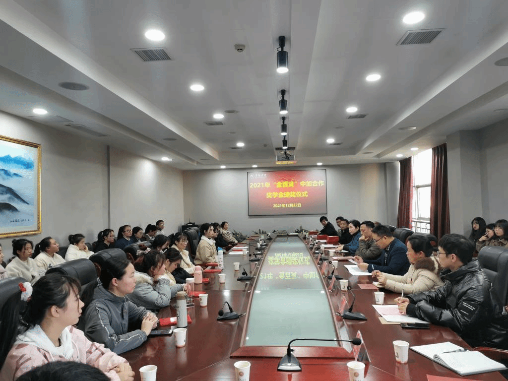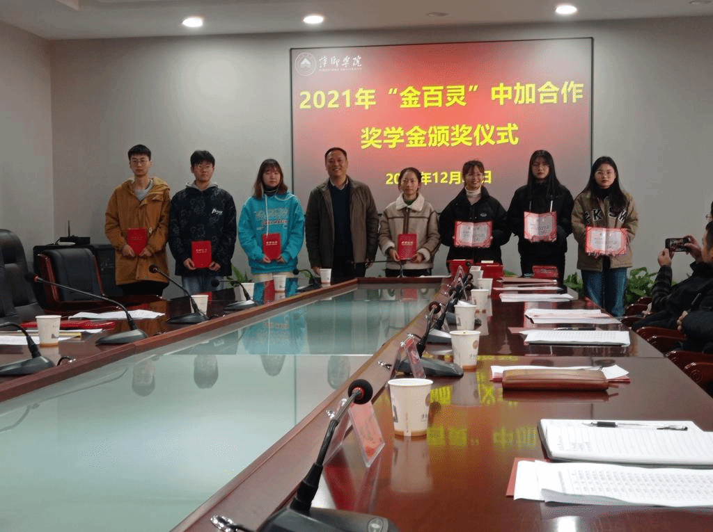 近日,beat365官网在至善楼第二会议室举办2021年“金百灵”中加合作奖学金颁奖仪式。校党委委员、副校长邱建丁,南昌金百灵商务咨询有限公司董事长林东宇出席会议,学前教育学院、工程与管理学院、商学院党委副书记和辅导员,以及全体获奖学生参加会议。会议由国际教育与交流中心主任黎海玲主持。