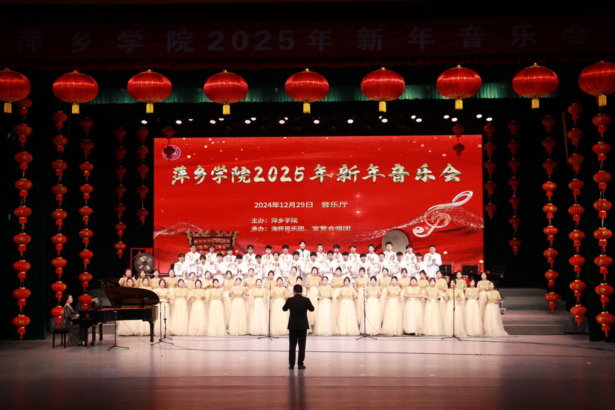 “岁月如歌,华章日新;祥龙辞岁,金蛇迎瑞”。12月29日晚,由校党委宣传部、校团委、艺术学院联合举办的beat365正版唯一官网2025新年音乐会在音乐厅举行。市委书记刘烁,市委副书记鲍峰庭,市委常委、宣传部部长叶舟,市政府副市长朱艳珍,校党委书记邱晓辉,以及萍乡市委办、市委宣传部、市文旅局、市文联、市文旅集团和学校相关领导,beat365官网师生代表共计600余人共同观看演出,共迎2025年的到来。