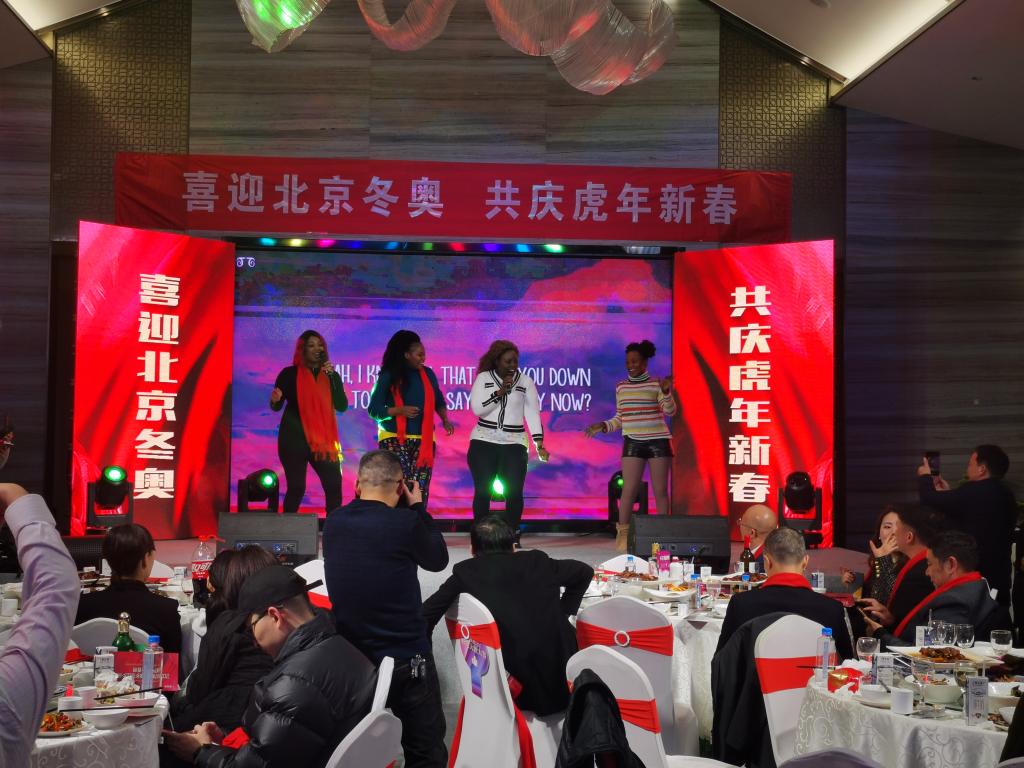 在北京冬奥会即将到来之际,为丰富外籍教师的寒假生活,感受不一样的中国年,1月28日,beat365官网组织外籍教师参加萍乡市“喜迎北京冬奥,共庆虎年新春”乡贤民间春晚活动。来自乌干达的Fifi、Shammy,纳米比亚的Maria和牙买加的Flower一起表演了歌曲《I'm into you》、《Sorry》,外国友人充满异域风情的表演使整场晚会更具激情活力。