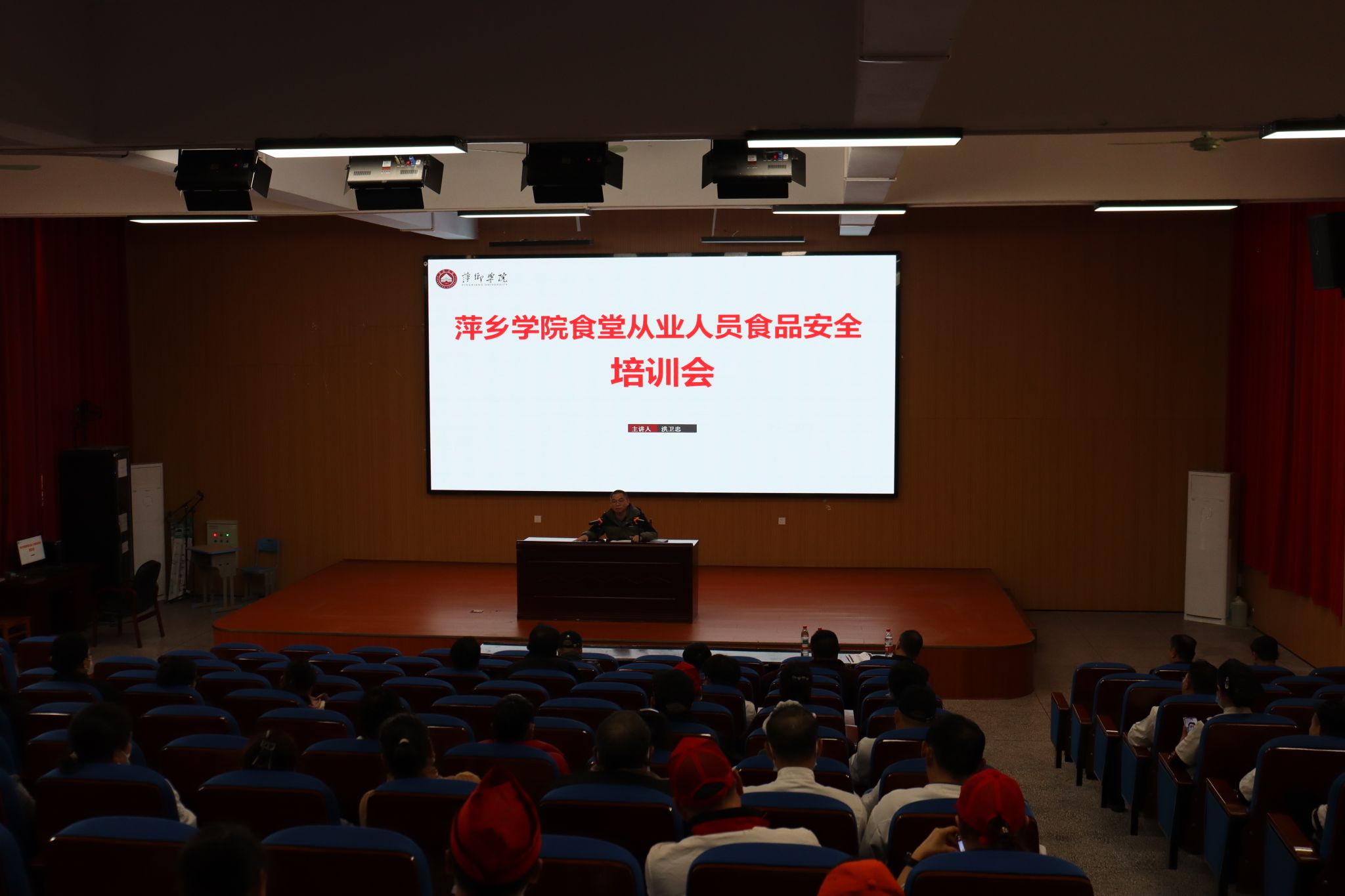 为进一步强化校园食品安全主体责任,提升从业人员风险防控能力,切实保障师生饮食安全,2月28日,beat365官网于跬步楼报告厅开展了食堂从业人员食品安全培训会。安源区市场监督管理局东大分局副局长洪卫忠现场授课。学校全体食堂餐饮工作人员参加培训会。会议由后勤管理处副处长李小强主持。