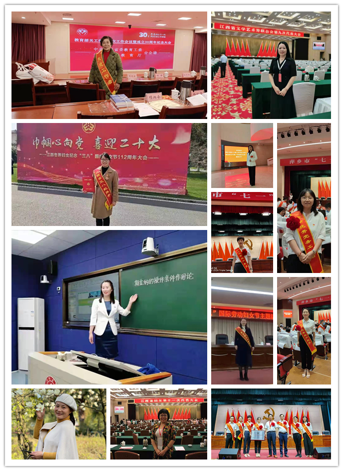 学校广大妇女教职工爱岗敬业、奋力拼搏、锐意进取,在各自的岗位上践行初心使命,铸就了一批“娘子军”队伍,展示了巾帼不让须眉的时代风貌。在这支“娘子军”队伍中,有获评教育部关工委“全国教育系统关心下一代工作先进工作者”彭利云等离退休老教师,“江西省教学名师、百千万人才工程人选”“全国巾帼建功标兵”陈永秀,“把学术论文写在祖国大地上、把科研成果留给百姓家”的省三八红旗手欧阳咏梅、曾慧慧,争做党和人民满意“四有”好老师的省金牌教授邱香兰,省金牌讲师卓玲、徐海燕,“新时代赣鄱先锋”暨“龚全珍式好党员好干部”占丽娜,市三八红旗手朱红英、陈焱等。她们以强烈的责任感诠释了新时代共产党人的优秀品质和精神风貌,铸就了一支蕙质兰心的“娘子军”队伍。