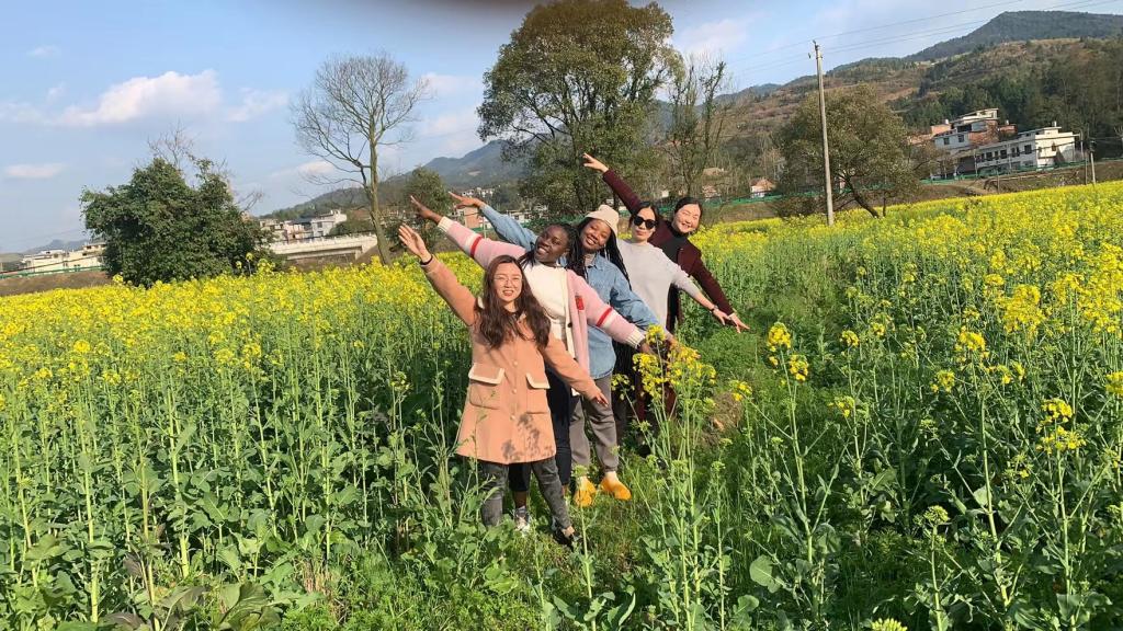 此次交流活动分为交流座谈、外教课堂、乡村踏青三部分。