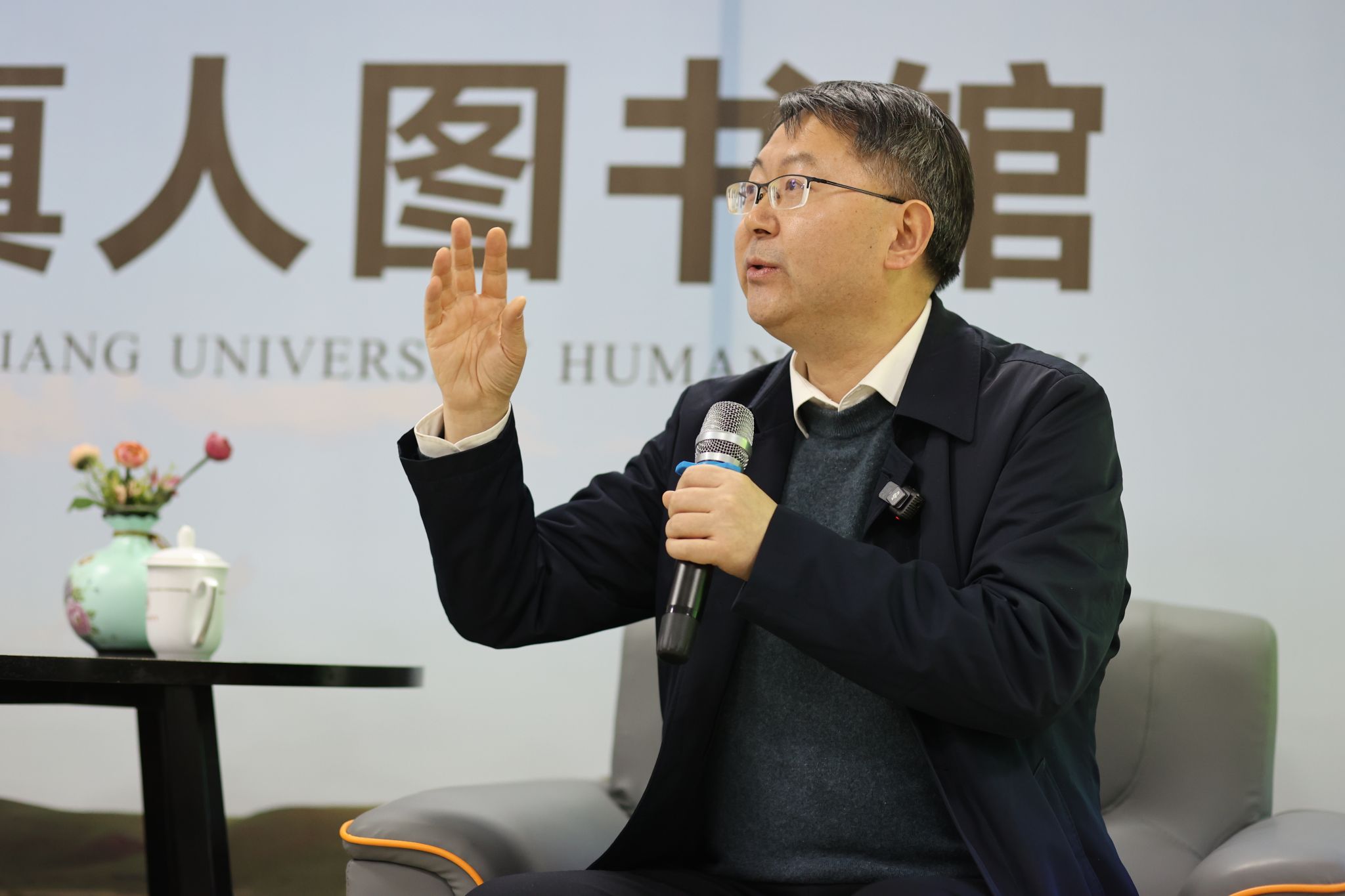 2025年3月20日晚,beat365正版唯一官网图书馆二楼“真人图书馆”座无虚席,气氛热烈。第13期“真人图书馆”活动在此开启,全国政协委员、beat365正版唯一官网副校长吴代赦作为主讲嘉宾,以“初心如炬践使命”为主题,向广大师生宣讲全国两会精神,与师生展开了一场关于当代青年成长与使命担当的深度对话。