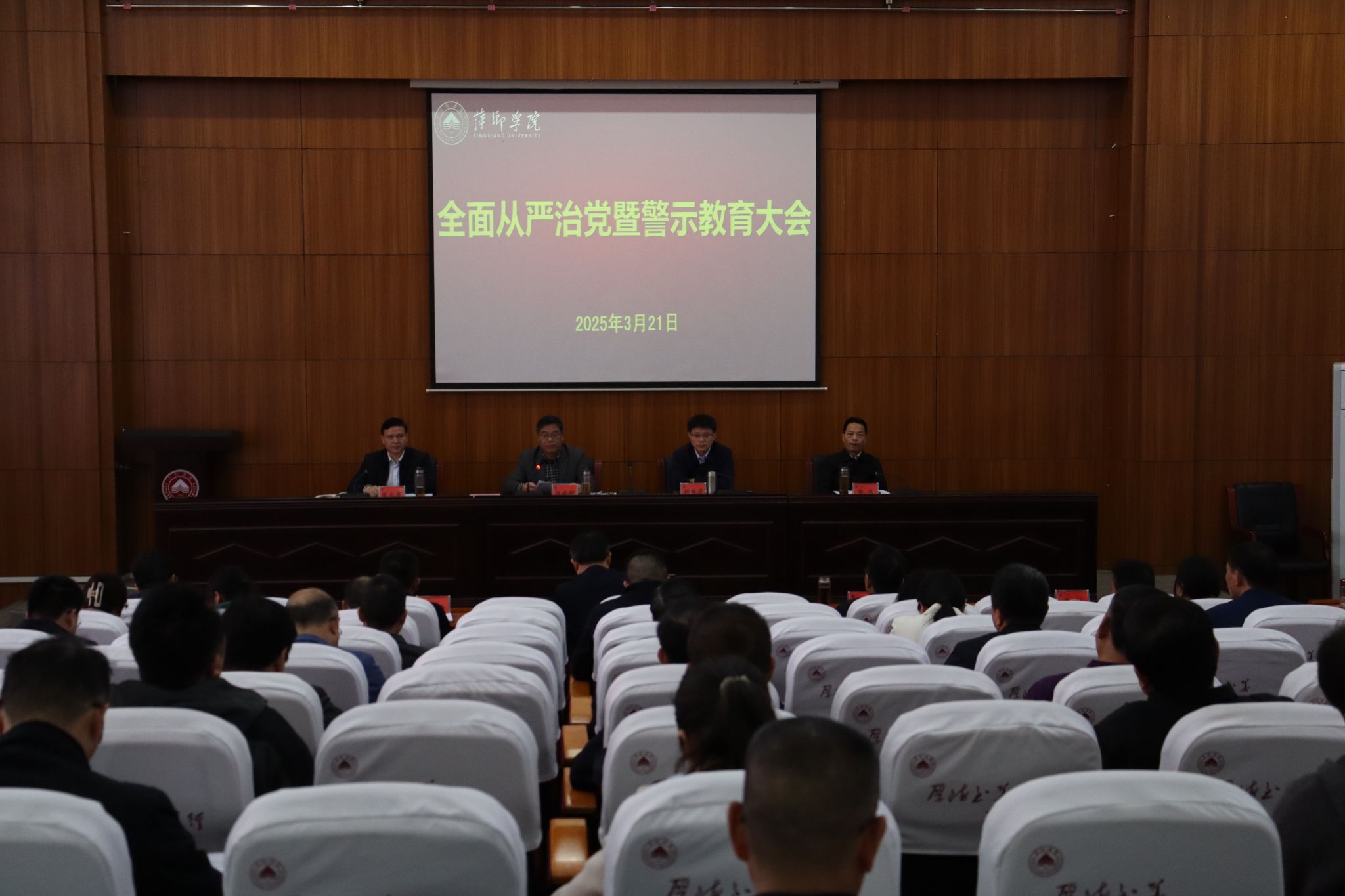 3月21日,beat365官网在至善楼学术报告厅召开全面从严治党工作会议,部署2025年重点工作任务,纵深推进学校全面从严治党工作。全体在家校领导出席会议。学校副处级以上领导干部参加会议。会议由党委书记邱晓辉主持。