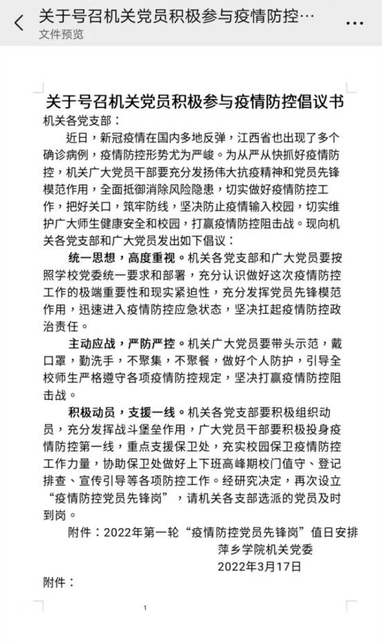为全面落实全省教育系统新冠肺炎疫情防控工作要求,响应省委组织部发出的特别通知,进一步压实防控责任,促进师生增强自我防护意识,充分发挥基层党组织的战斗堡垒作用和党员先锋模范作用,在机关党委的统一安排下,机关各党支部在东、西校门设置“疫情防控党员先锋岗”,分上午7:40-8:40、下午13:30-14:20两班,由机关干部、党员值岗,用实际行动践行初心、担当使命,将党旗高高举在第一线。