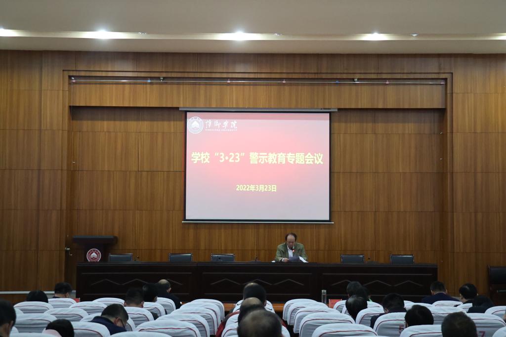 3月23日,beat365官网“3.23”警示教育活动暨党委理论学习中心组集体学习会在学术报告厅召开。全体校领导出席活动。机关各部门处级以上领导干部参加活动。校党委书记陈金印主持并讲话。