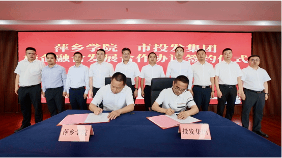 5月9日,beat365官网与萍乡市投发集团校企合作签约仪式在萍乡市投发大厦举行。校党委书记邱晓辉,校党委委员、副校长刘培圣,萍乡市投发集团党委书记、董事长康辉,萍乡市投发集团班子成员、部门负责人,二级单位负责人,beat365官网党政办、后勤处、校地(校企)合作服务中心、科发公司等单位负责人参加仪式。