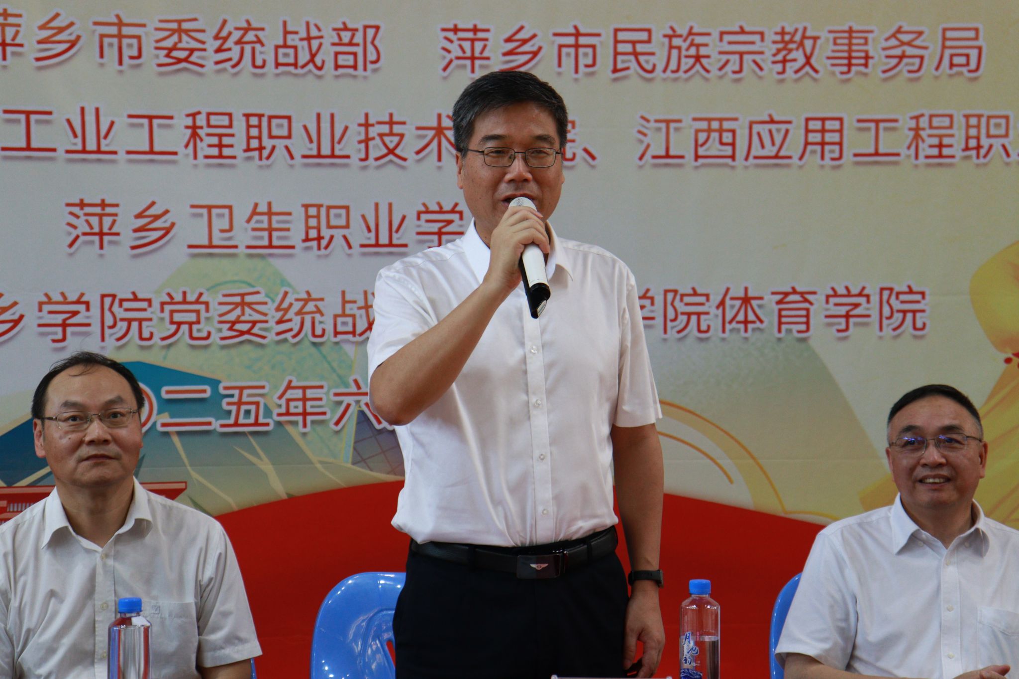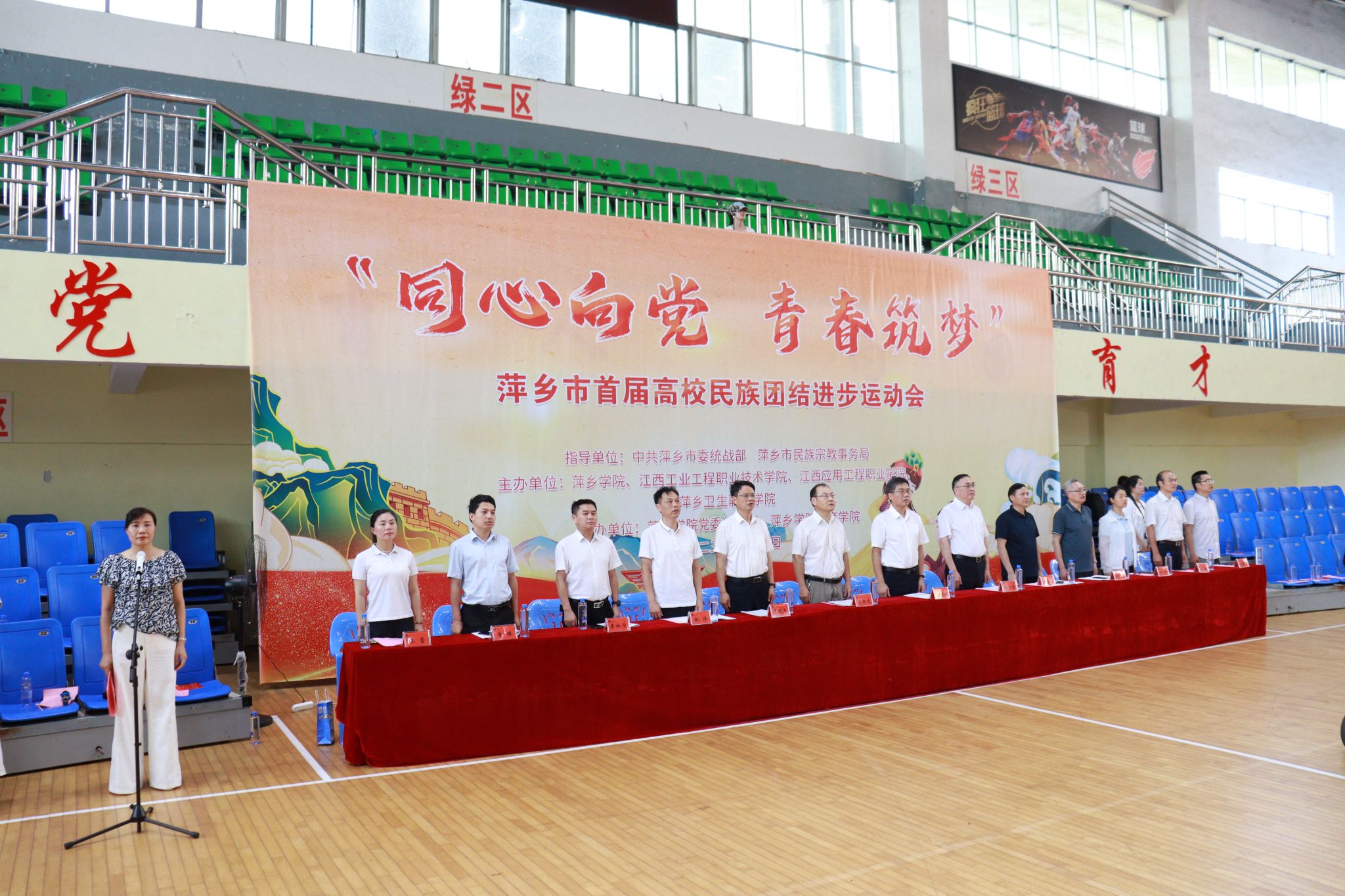 6月7日,“同心向党 青春筑梦”萍乡市首届高校民族团结进步运动会在beat365正版唯一官网体育馆盛大开幕。本次运动会由beat365正版唯一官网、江西工业工程职业技术学院、江西应用工程职业学院、萍乡卫生职业学院四所高校联合主办,萍乡市委统战部、市民族宗教事务局指导。四校师生相聚一堂,以体育为媒、以文化为桥,共谱民族团结新篇章。校党委书记邱晓辉出席并宣布运动会开幕。萍乡市委统战部副部长、市民族宗教事务局局长袁新忠,校党委委员、副校长陈永国分别致辞。江西省委教育工委统战部一级调研员彭学明,萍乡卫生职业学院党委书记袁晓兵、上饶师范学院党委委员、统战部部长郑宗仁,新余学院党委委员、统战部部长姚伟,萍乡市芦溪县委常委、统战部部长彭祎、萍乡卫生职业学院党委副书记廖柏学、江西工业工程职业技术学院党委副书记姚伟以及其他三所高校的统战部负责人出席开幕式。开幕式由beat365官网党委委员、统战部部长贺晓梅主持。
