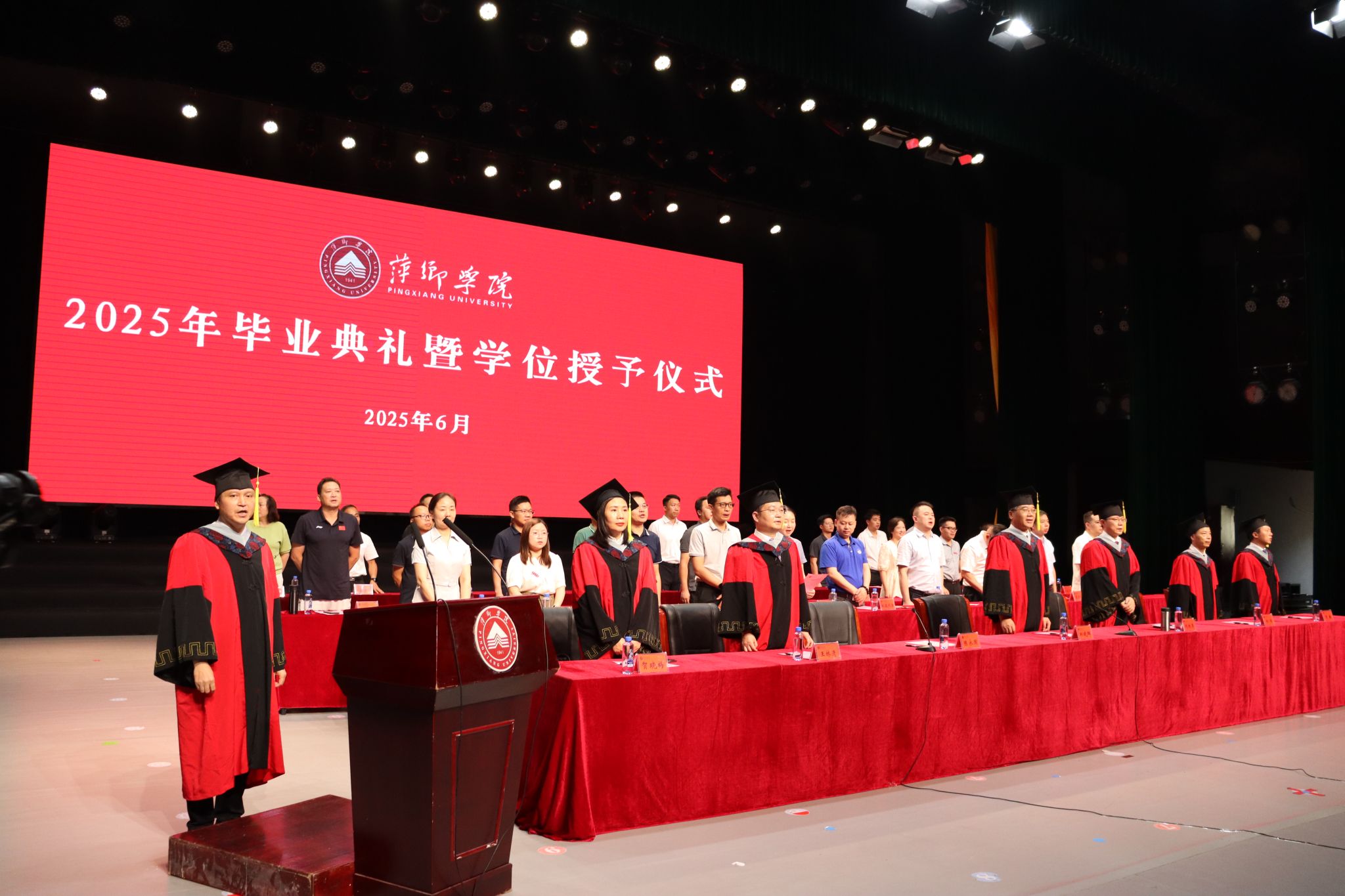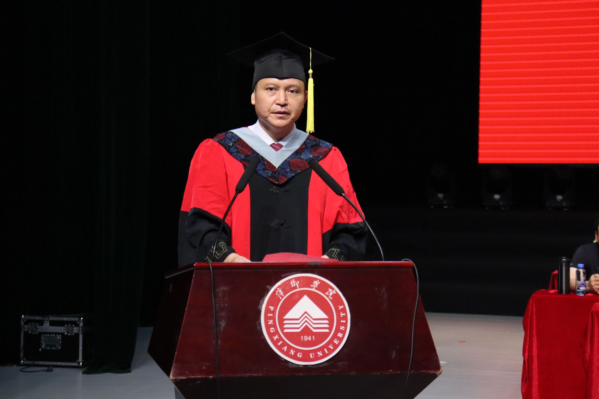 刘林芽代表学校,向2025届毕业生奋力拼搏圆满完成学业表示热烈的祝贺。他表示,这一纸毕业证书的背后是大家深耕专业的艰辛与收获,是充实人生的实践与历练,更是飞扬青春的定格与见证。从初入萍院时对知识的渴望,到今日即将离校时的自信从容,校园的每一处角落都镌刻着大家奋斗的足迹。这四年,大家不仅是学校跨越式发展的见证者,更是改革创新的参与者。