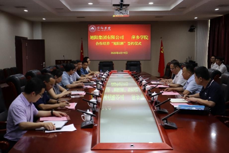 2025年6月19日,学校与旭阳集团有限公司合作培养“旭阳班”签约仪式在至善楼三楼第一会议室举行。校长刘林芽、旭阳集团人力资源部总经理郭修全出席签约仪式并致辞,旭阳集团萍乡旭阳能源有限公司总经理杨俊杰、萍乡旭阳总管理部经理赵兴亮、萍乡旭阳人力资源部副总经理张体鹏,校党委委员、统战部部长、教务处处长贺晓梅及学校相关部门负责人、材料与化学工程学院党政班子成员参加仪式。仪式由校党委委员、副校长黄志开主持。