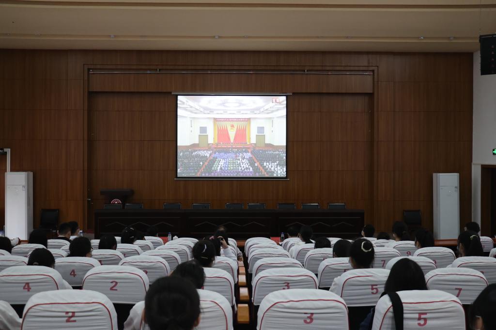 5月10日上午,庆祝中国共产主义青年团成立100周年大会在北京人民大会堂隆重举行。中共中央总书记、国家主席、中央军委主席习近平出席大会并发表重要讲话。校党委书记陈金印,校党委委员田常红,校党委委员、党委宣传部部长陈永国,与校团委老师、团员青年代表一同在至善楼学术报告厅收听收看庆祝中国共产主义青年团成立100周年大会直播盛况,认真聆听习近平总书记的重要讲话。