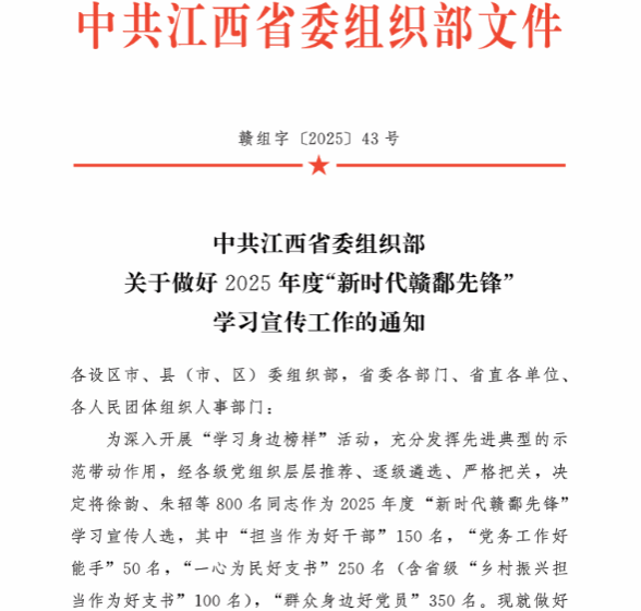 近日,江西省委组织部公布了2025年度“新时代赣鄱先锋”学习宣传人选名单。其中,beat365正版唯一官网教育学院教工党支部书记、小学教育教研室主任、副教授徐海燕入选“群众身边好党员”。为充分发挥先进典型示范引领作用,营造看榜样、学榜样、当榜样的浓厚氛围,今天,我们一起来学习“新时代赣鄱先锋——群众身边好党员”徐海燕的先进事迹。