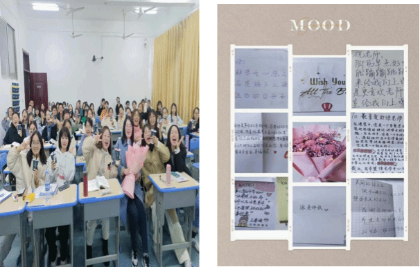 但少数学生反映线上课缺少交流互动,缺乏亲切感。于是在脚还没有完全康复的情况下,她拄着拐杖走进了教室给学生们上课。她的这种敬业精神深深地感染了学生,学生准备了鲜花和满满一礼盒的祝福语,希望老师可以早日康复。
