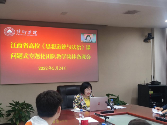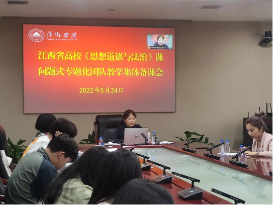 5月24日下午,江西省高校《思想道德与法治》课问题式专业化团队教学改革集体备课会在beat365官网以视频会议的形式举行。beat365官网作为此次集体备课会承办单位在第一会议室设主会场。校党委副书记、校长史焕平,党委委员、组织部部长陈永秀及马克思主义学院师生代表参加现场集体备课会。全省部分思政课教师代表参加线上集体备课会。集体备课会由马克思主义学院院长朱红英主持。