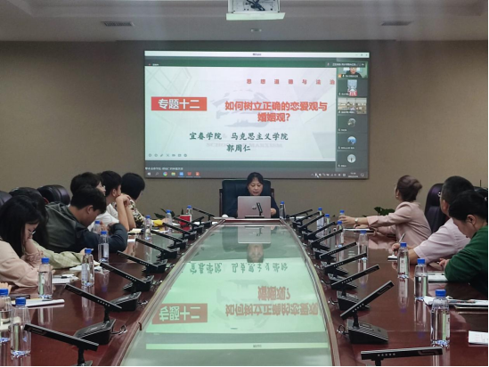 宜春学院马克思主义学院教师郭周仁则以“如何树立正确的恋爱观与婚姻观”为题,结合大学生生活实际以及自身经历,向大家讲述了大学生如何树立正确的恋爱观和婚姻观。