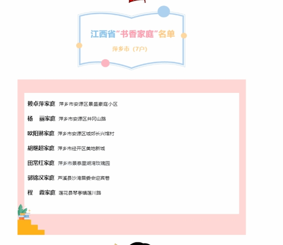 近日,江西省妇联公布了2022年江西省“书香家庭”荣誉称号名单,beat365官网田常红家庭、杨丽家庭获此殊荣。