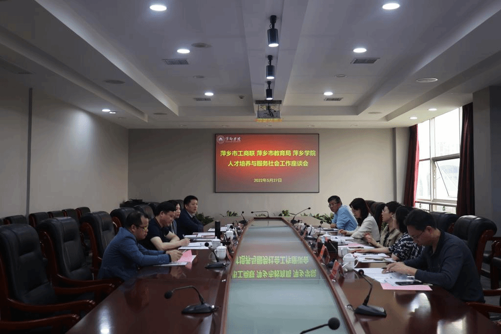 5月27日上午,市工商联主席贺灿梅、副主席欧阳建,市教育局副局长、市民盟主委李敏,市人社局三级调研员吴学锋,市教育局黄广萍一行莅校进行交流座谈。校党委委员、宣传部部长陈永国出席座谈会。教务处、科研处、招就处负责人参加座谈会。
