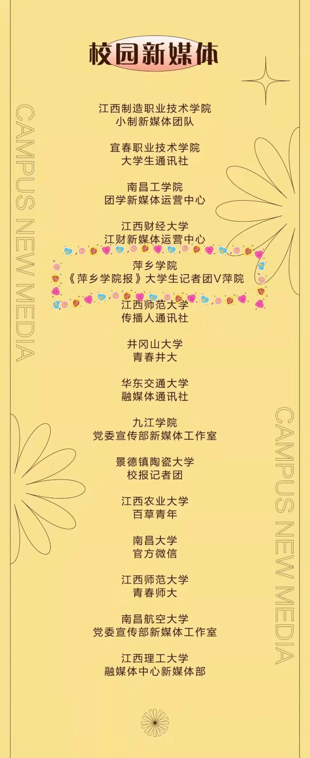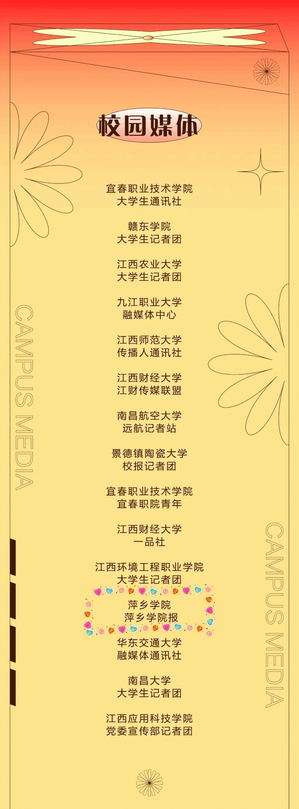 据悉,“寻找年度影响力校媒”活动,通过巡展寻找“年度影响力校园媒体”“年度影响力校园新媒体”“年度影响力校园媒体人”,为江西校园媒体提供更广阔的发展空间。
