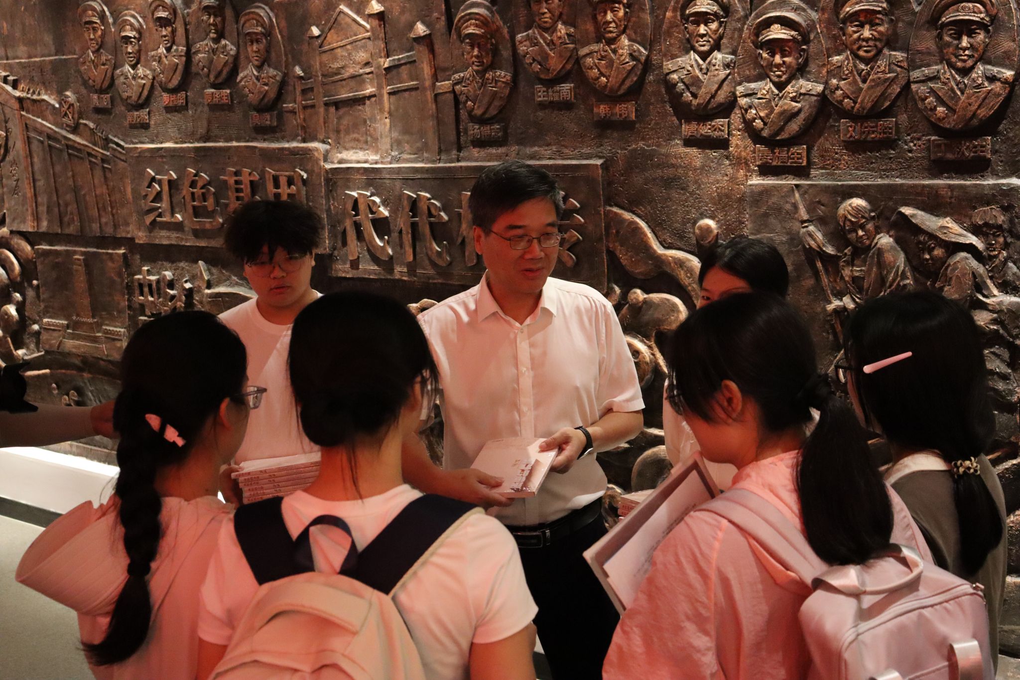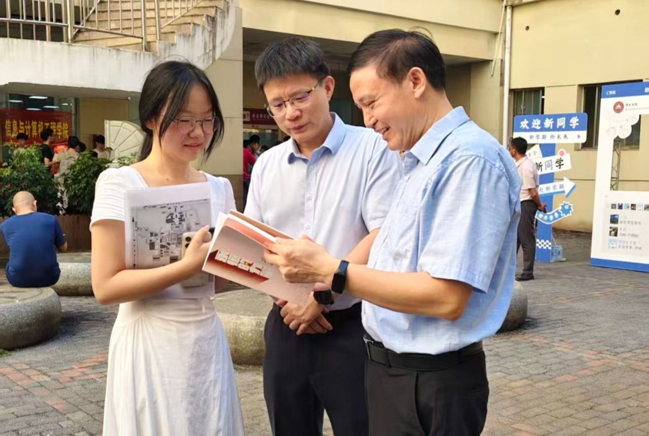 校党委书记邱晓辉,校长刘林芽等在家校领导亲临迎新现场,与新生及家长亲切交流、合影留念,并慰问一线工作人员和志愿者,对他们的辛勤付出表示充分肯定。在图书馆一楼的安源红色文化育人展览馆,邱晓辉向进馆参观的新生讲述了安源红色热土发生的革命故事,向他们赠送了红色文化书籍,并提出了殷切的希望,“希望同学们赓续红色血脉,传承红色基因,坚定理想信念,做一个有理想有担当的新时代青年”。刘林芽在跟学生交流时表示,学校学习氛围浓厚,希望同学们能把握当下,努力学习,在知识的海洋里乘风破浪、不断进取。