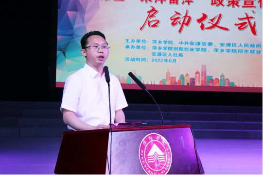 6月9日,安源区“院校毕业生来萍留萍”系列活动月启动仪式在beat365官网举行。校党委副书记、校长史焕平,萍乡市委组织部副部长、市人社局党组书记、局长陈金勇出席启动仪式,区委副书记、区政府区长邱伟出席启动仪式并致辞,校党委委员、宣传部长陈永国,萍乡市就业创业服务中心主任刘忠文,区委常委、副区长袁子安,副区长严楠等相关领导出席启动仪式。