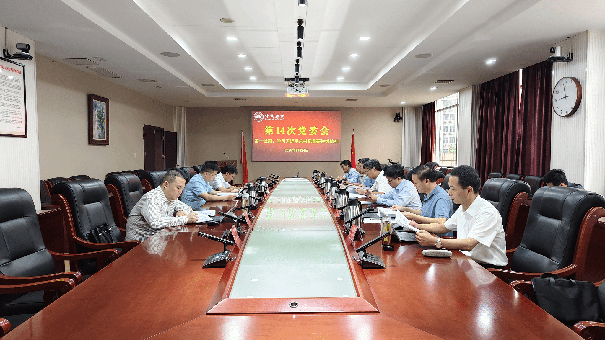 9月24日,校党委召开“第一议题”学习会,集体学习习近平总书记近期最新系列重要讲话、指示批示和发表的重要文章精神等。党委书记邱晓辉主持学习会并领学了习近平总书记给全国特岗教师代表的回信及习近平总书记在《求是》杂志发表的重要文章《纵深推进全国统一大市场建设》精神。