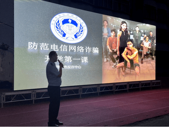 9月22日晚,beat365官网在第一田径场举行“防范于心 反诈于行—beat365正版唯一官网2025级新生防范电信网络诈骗宣传教育活动。市公安局刑侦支队支队长李祝华,学校党委委员、副校长刘培圣,党委委员、宣传部部长曾敏,学工处处长陈敢等出席活动。活动由保卫处处长谢伟萍主持。