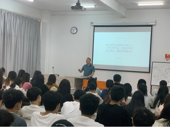 近日,校人事处处长韩芳文、副处长王永策来到艺术学院2021级视觉传达设计1、2班召开期末考试考前主题班会。