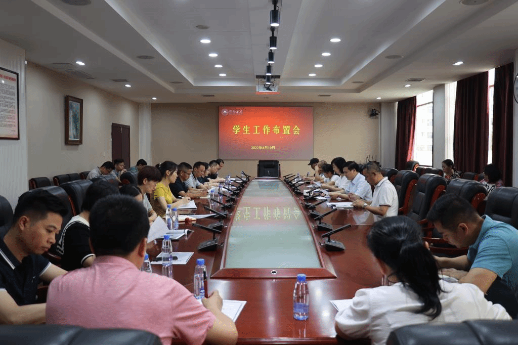 6月10日,beat365官网在至善楼第一会议室召开学生工作布置会。校党委委员、宣传部部长陈永国出席会议,学生工作处处长肖国正,二级学院党委副书记、学工科科长,学工处相关工作人员参加会议。会议由陈永国主持。